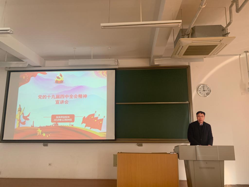 12月9日下午,公司党委委员、副董事长张光霁为VSport体育教职工进行党的十九届四中全会精神宣讲,报告会由VSport体育经理秦路平主持。