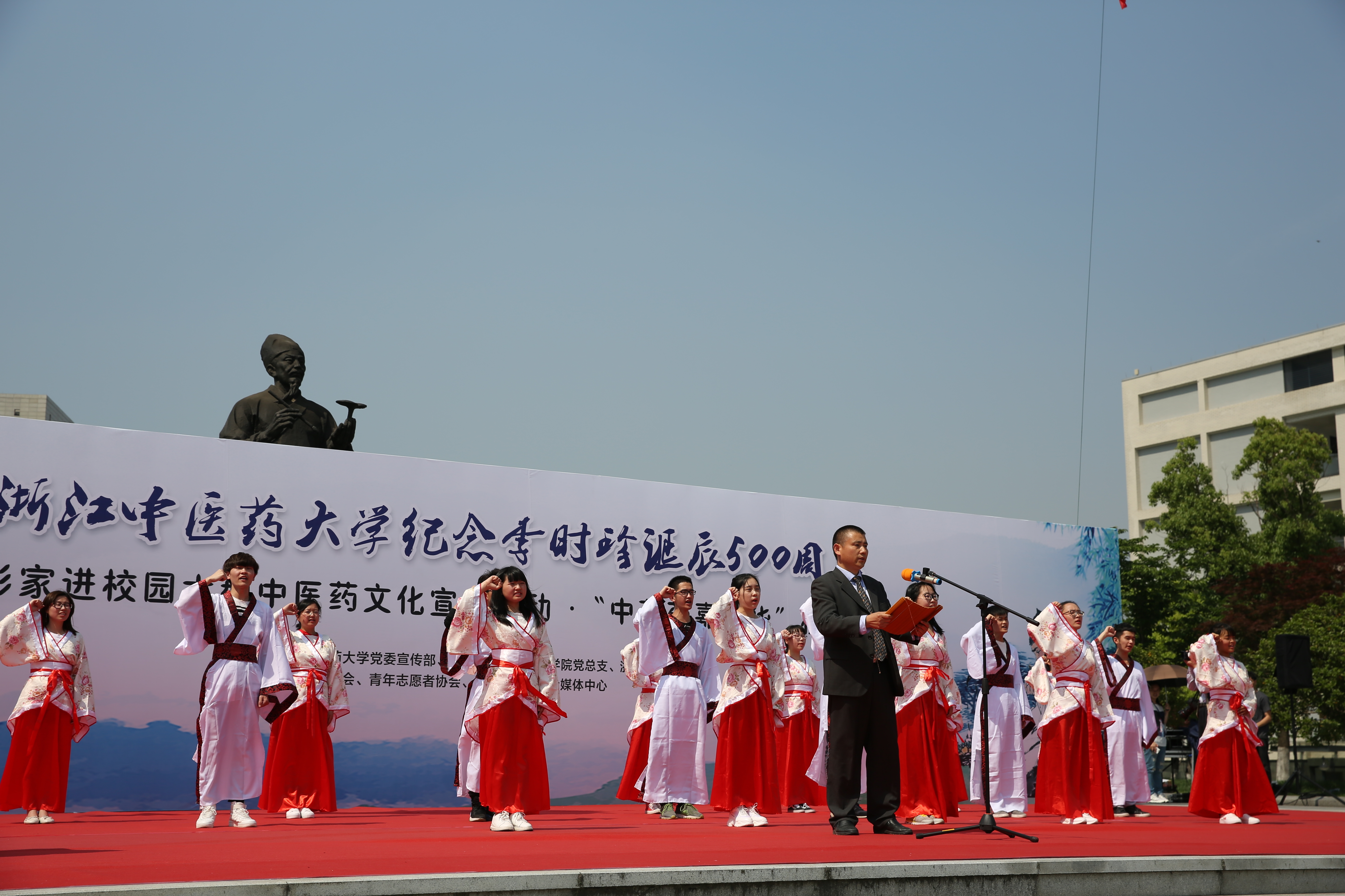 启动仪式上,18名身着汉服的药员工在浙江省首届高校优秀教师、VSport体育中药资源所副所长(主持工作)张水利教授的带领下,进行了庄严的药员工宣誓仪式。随后,张光霁副董事长为VSport体育中草药嘉年华团队授旗,而由79名同学共同完成的纪念李时珍五百周年快闪仪式也在时珍广场火热上演,校园旗舰站两大会场的活动也随之正式展开。