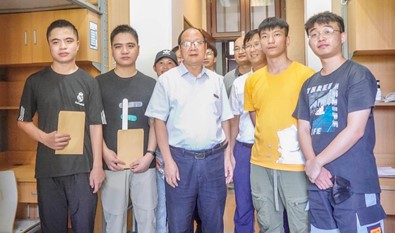在9B528寝室,黄文秀书记时隔两个月再次遇到了录取在公司中药学专业的卢大康和卢大鹏两兄弟,并送上了慰问金。据悉,7月下旬黄文秀书记曾赴东阳江镇为两兄弟送上录取通知书,并一直惦记着他们的学习和生活情况。黄书记亲切地和新生进行交谈,细心询问入学报到事宜,鼓励同学们在大学期间珍惜时间,认真学习,打好基础,争取更大进步。