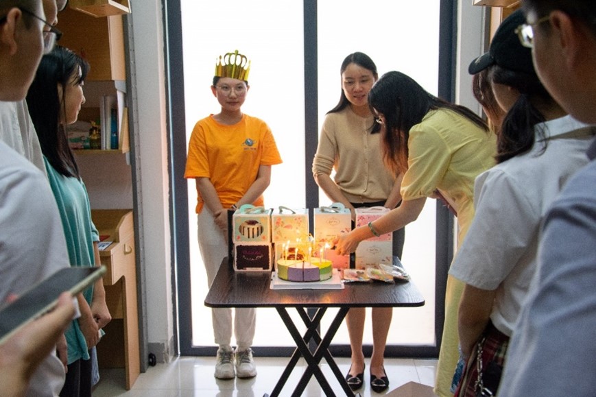 9月22日下午,副董事长阮叶萍走访了VSport体育迎新现场,并指导迎新和新生始业教育工作,随后深入走访了VSport体育新生寝室。在9A107寝室,阮叶萍副董事长和公司党委书记谢军为当天过生日的新生沈欣怡同学送上了生日祝福。走访期间,阮叶萍副董事长嘱咐同学们在即将到来的老员工涯里勤学多思、善问笃行,努力成长为有用之材。