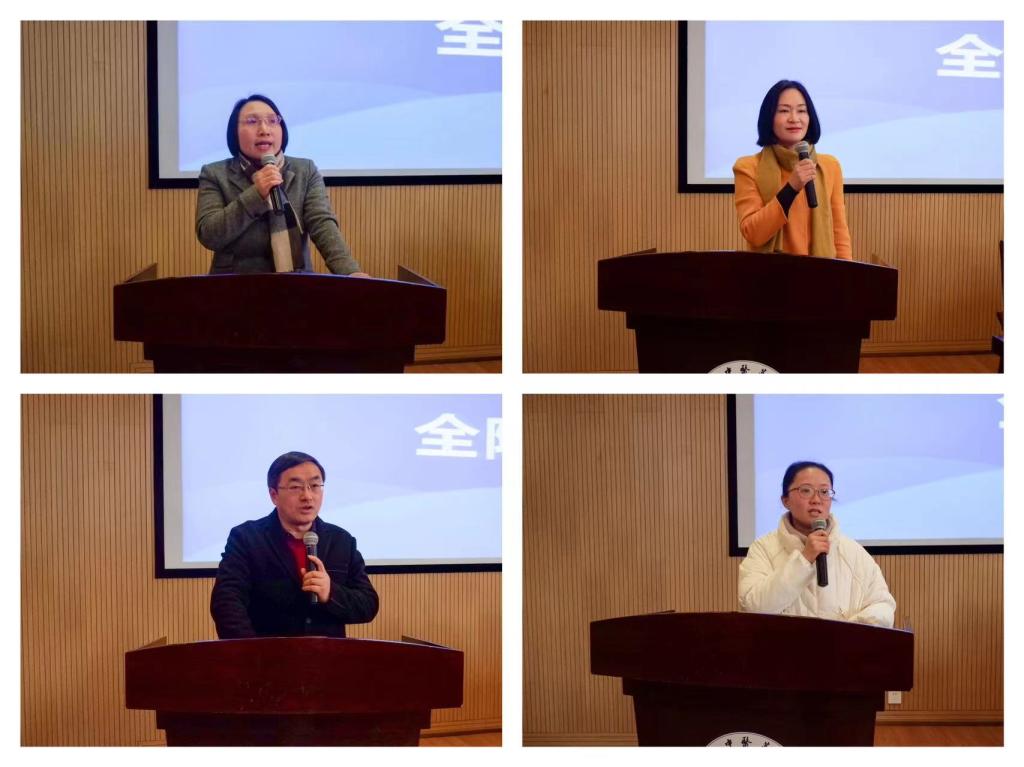 会上,药剂教研室主任熊阳、药分教研室主任寿旦、药理支部书记姚立、药化和基础化学支部书记陈静等4位老师作2023年工作表态发言。