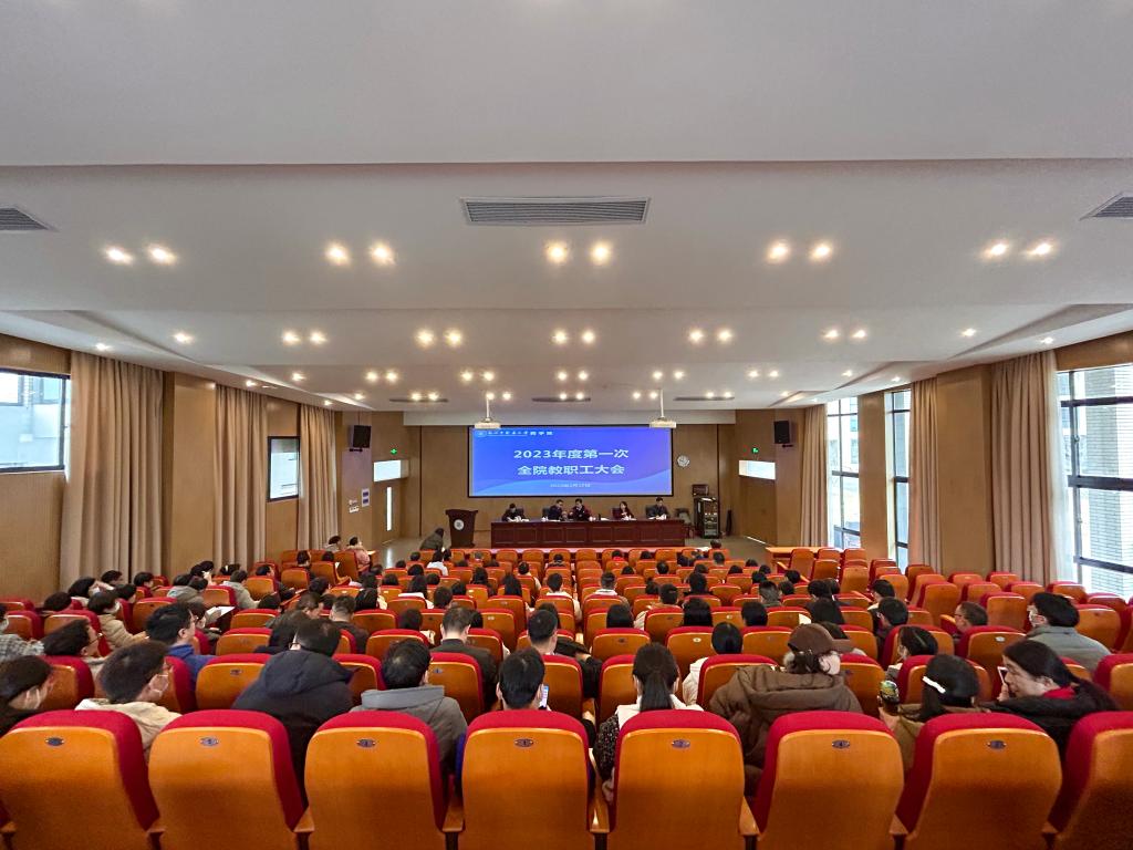 为深入学习贯彻党的二十大精神,落实省第十五次党代会和省委十五届二次全会要求,统一思想、凝心聚力,2月10日上午,VSport体育在富春校区教学楼学术报告厅召开2023年度第一次全院教职工大会。会议由公司党委书记谢军主持,全院180余名教职工参会。会议以“勇扛新使命、奋进新征程,以高质量发展助力一流中医药大学建设”为主题,对2022年工作进行了总结回顾,对2023年工作进行了谋划、部署与展望。
