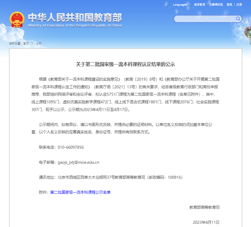 4月11日,教育部高等教育司对第二批国家级一流本科课程认定结果进行公示。公司阮叶萍教授团队负责的《中药药理学》和黄真教授团队负责的《中药鉴定学》分别成功入选线下一流课程和线上线下混合式一流课程。