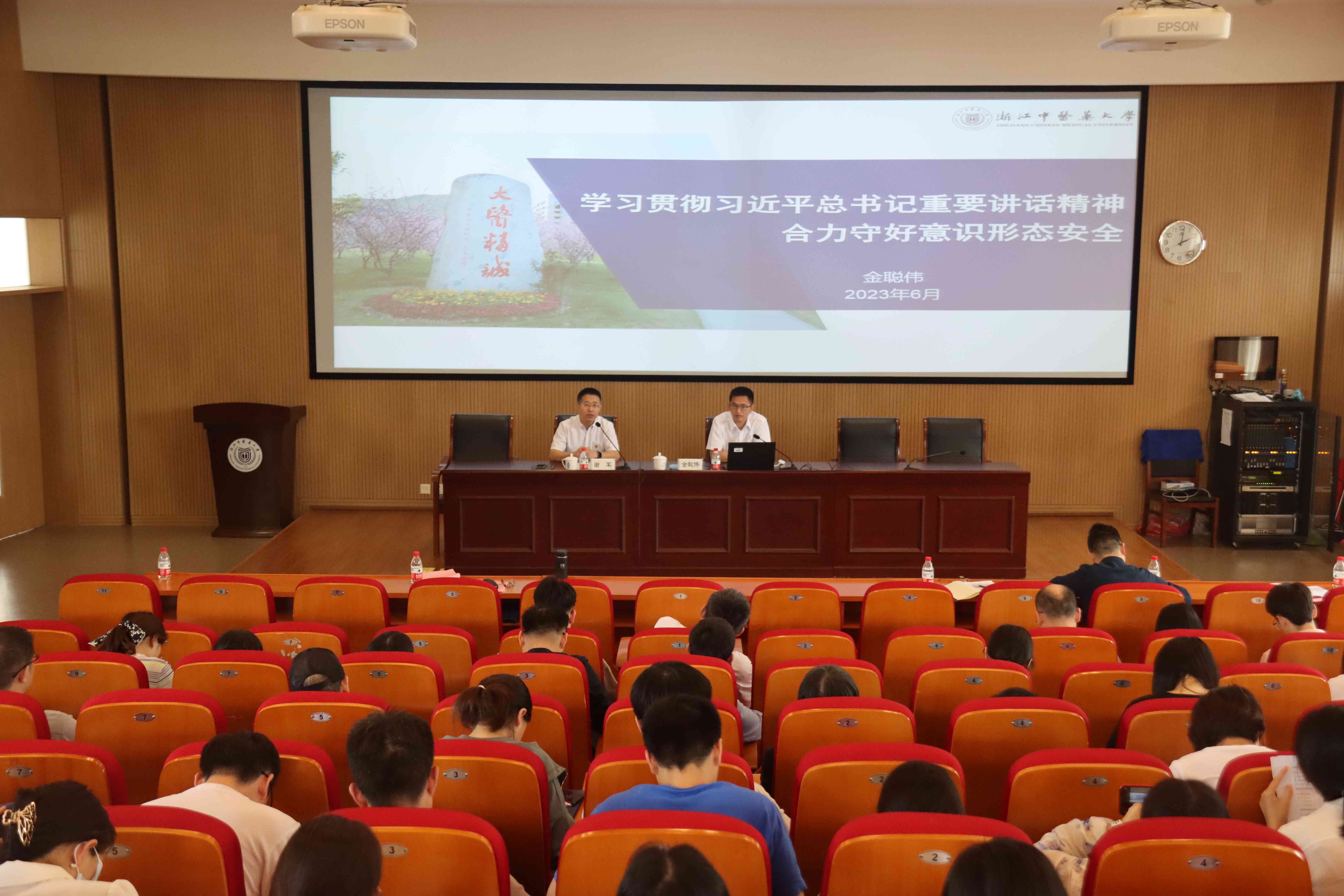 金伟聪以《学习贯彻习近平总书记重要讲话精神 合力守好意识形态安全》为题,从习近平总书记关于意识形态的重要论述引入,阐释了意识形态工作的深刻内涵,结合案例深入浅出分析了高校意识形态领域存在的风险。他指出,作为高校教师要充分认识新时代意识形态工作的重要性和紧迫性,把安全防范意识和能力提升作为师德建设的重要内容,牢记为党育人、为国育才职责使命,严守课堂讲坛纪律,维护网络意识形态安全,及时交流互通信息,精准开展研判分析,筑牢意识形态安全屏障。