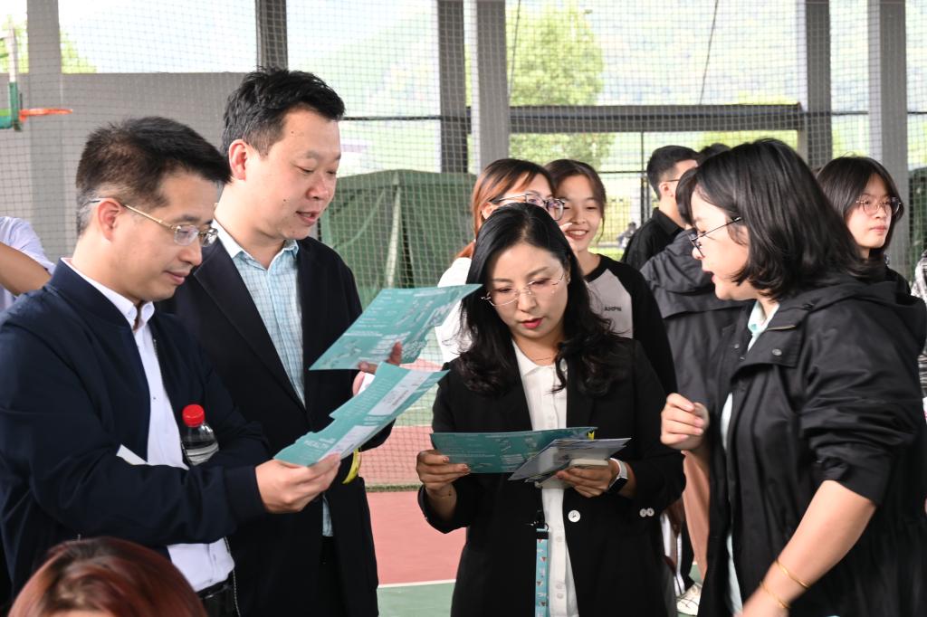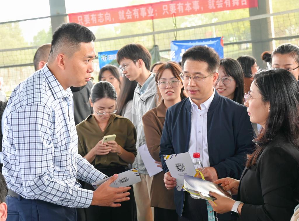 公司党委书记谢军、副书记蒋笑燕、副经理谷满仓到招聘会现场与用人单位亲切交流,大力推动双方需求的精准对接,向部分企业推荐了毕业生。