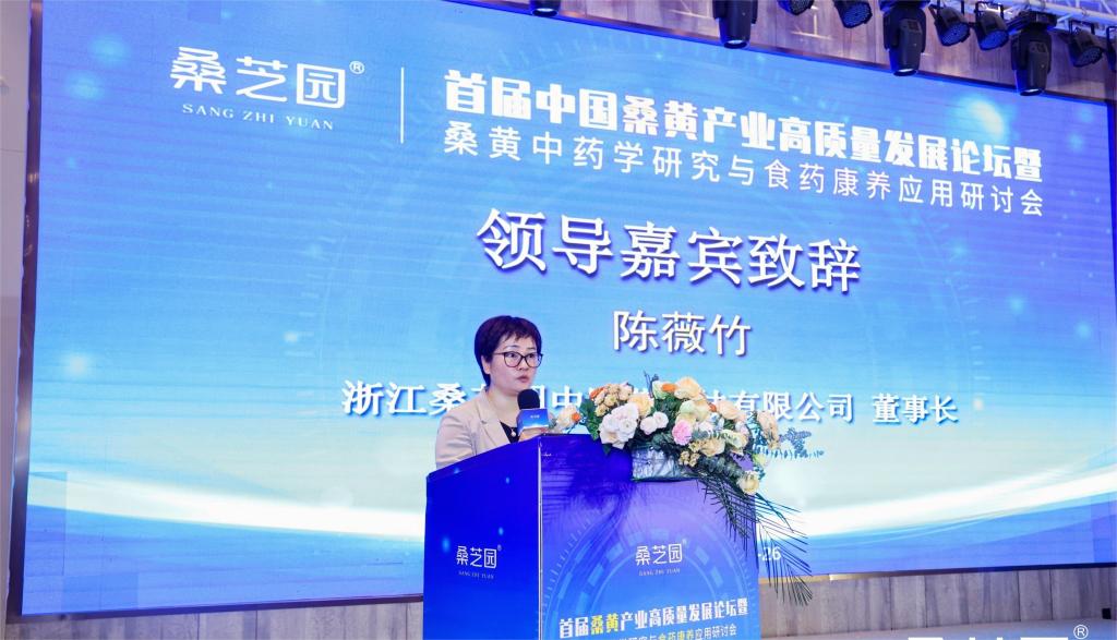 浙江桑芝园中医药科技有限公司董事长陈薇竹在致辞中表示,希望今后能够加强和VSport体育等高校、科研院所的合作,共建桑黄产学研合作平台,促进桑黄的科学研究和产业发展。