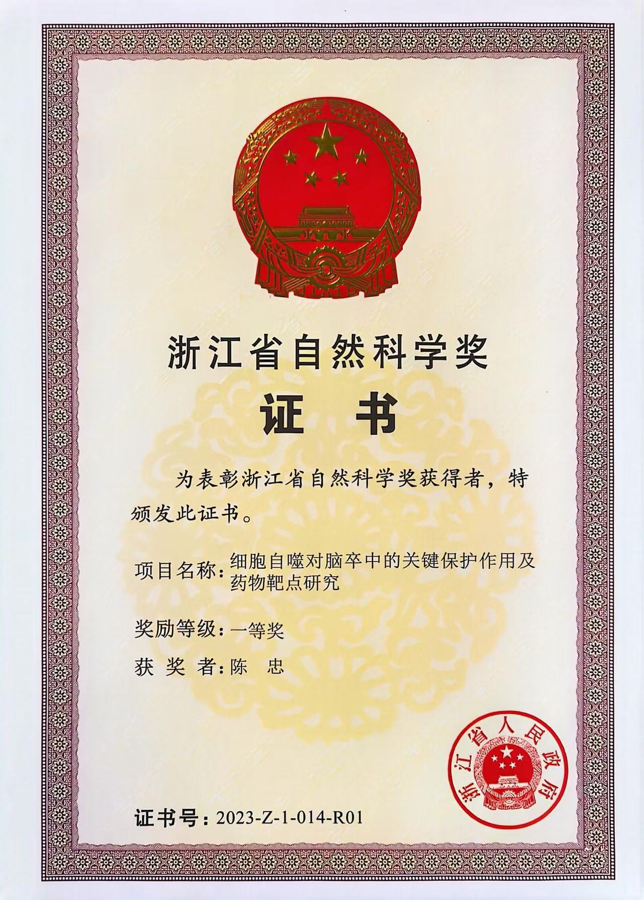 2024年11月22日,加快建设创新浙江因地制宜发展新质生产力动员部署会暨全省科学技术奖励大会在杭州举行。大会表彰了2023年度浙江省科学技术奖。公司陈忠教授团队完成的《细胞自噬对脑卒中的关键保护作用及药物靶点研究》项目喜获浙江省自然科学奖一等奖;寿旦教授团队完成的《补肾健骨中药促进慢性骨髓炎骨修复的基础研究与应用》项目喜获浙江省科技进步奖二等奖!