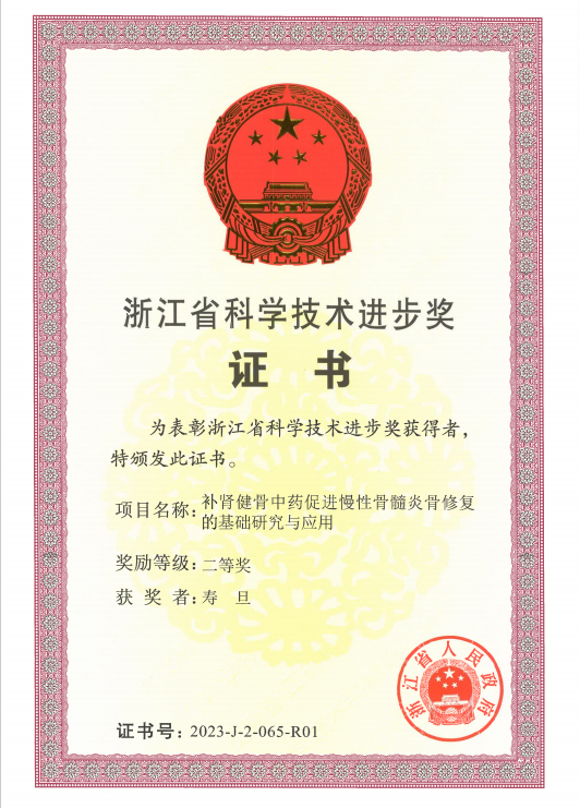 慢性骨髓炎骨不连及难愈合是骨科临床的一个国际性难题,寿旦教授带领团队针对这一难题,联合常州大学、浙大医公司附属邵逸夫医院等单位,开展了长达13年的临床及基础转化研究。在多项国家自然科学基金和浙江省自然科学基金等项目资助下,团队综合运用现代科学技术,围绕疾病发病机制、药效物质基础、靶向递药系统及临床治疗方案优化等四大领域深入探索。通过“临床发现-基础研究-回馈临床”模式,团队发表相关学术论文50多篇,授权发明专利4项,获浙江省药学会科学技术奖一等奖。相关成果在浙江省内得到广泛应用,累计病例数千例。实现了从基础研究到临床应用再到市场转化的全链条发展,为慢性骨髓炎综合治疗方案的开发与推广提供了重要的理论支持与实践范例。