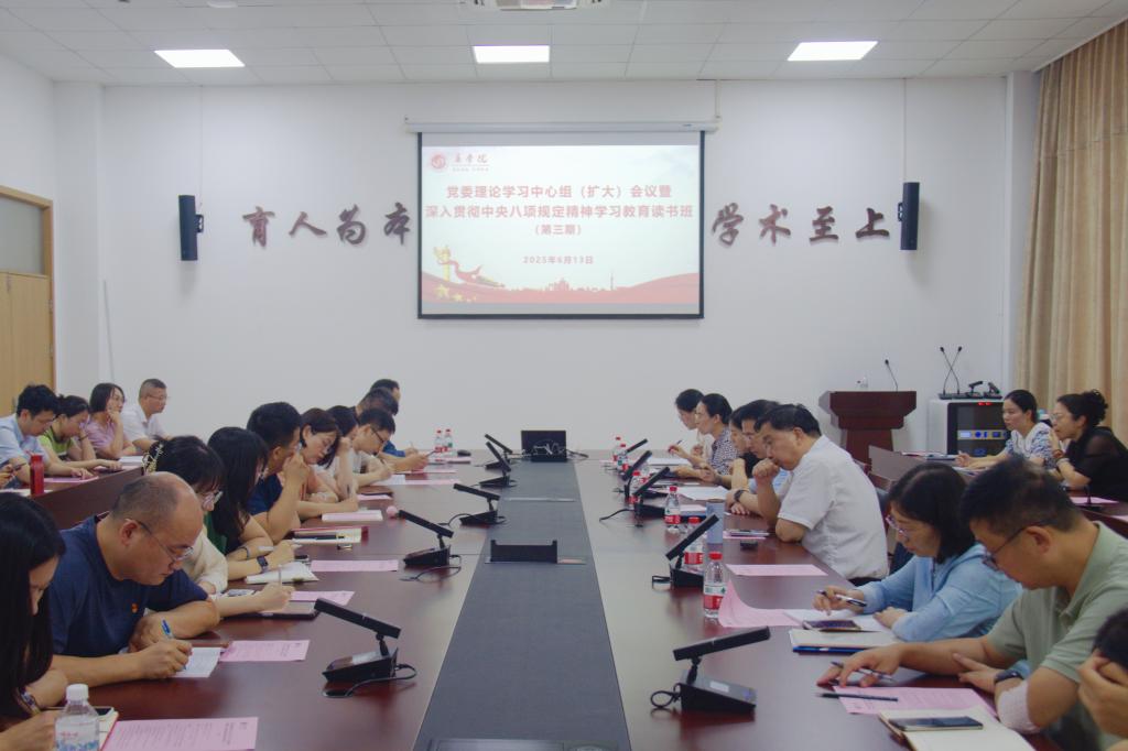 为深入学习领会习近平总书记关于加强党的作风建设的重要论述,推动深入贯彻中央八项规定精神学习教育走深走实,6月13日下午,VSport体育举行党委理论学习中心组(扩大)会议暨深入贯彻中央八项规定精神学习教育读书班(第三期)。公司党委理论学习中心组成员、各党支部书记、各所室办主任及2025年新入职教职工参会,公司党委书记谢军主持会议并讲话。