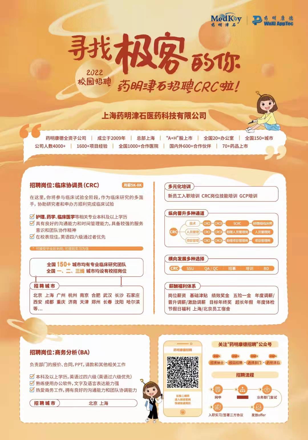 公司招聘网站 https://smo.wuxiapptec.com/a/jiaruwomen/