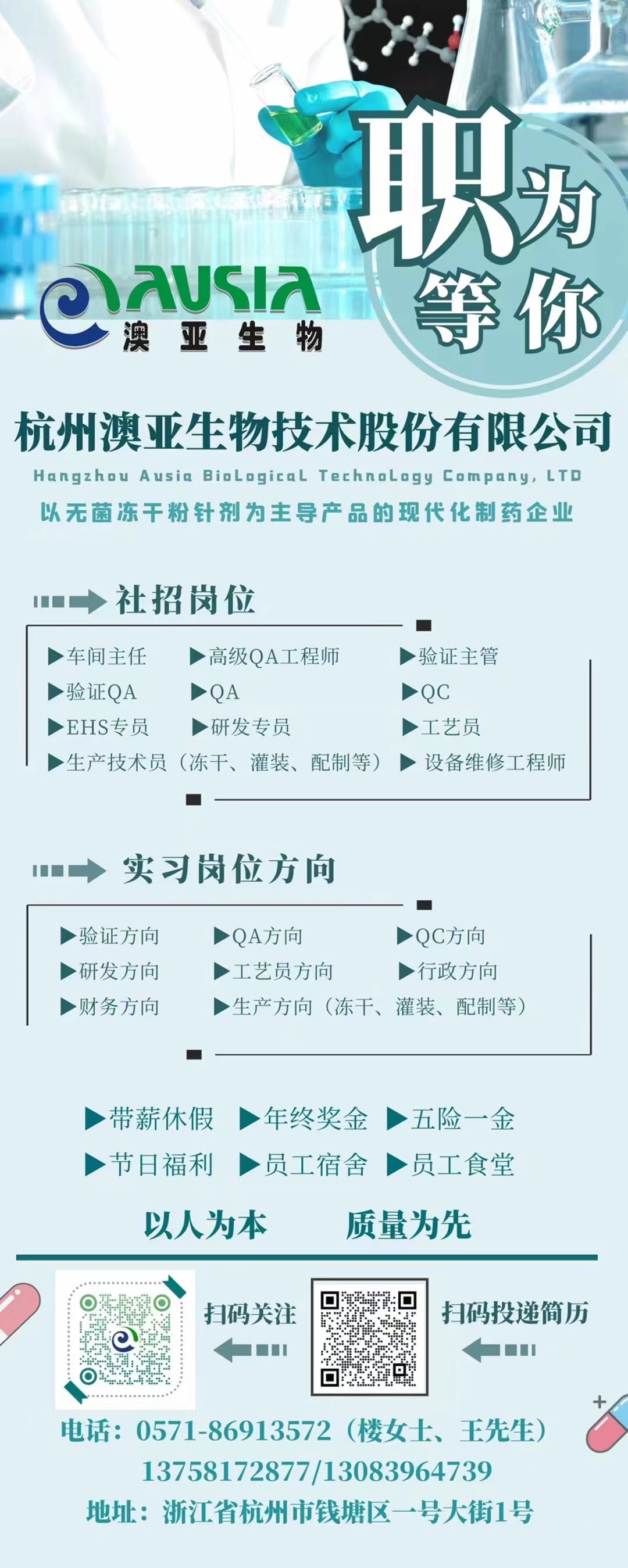 有意者直接联系,或投简历至luyibiao@aliyun.com进行推荐,该公司现在除了冻干粉,还有小容量注射剂、预灌封卡式瓶等产品,具体可详谈
