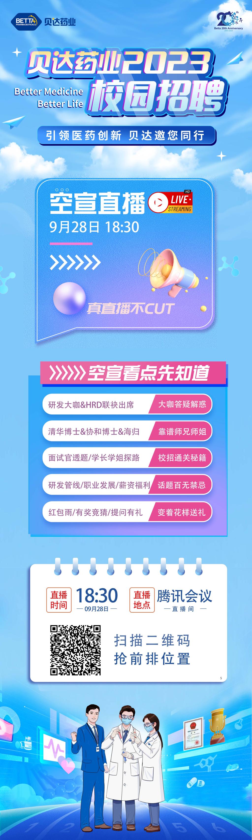 贝达药业2023校园招聘【9月28日晚线上宣讲】