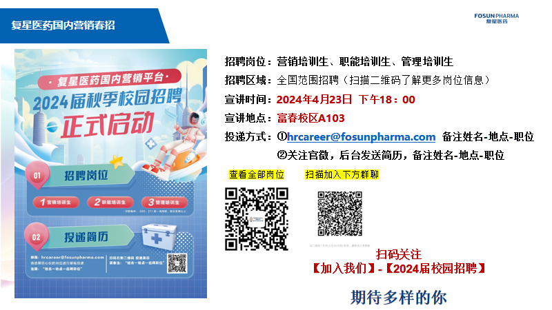 1.邮箱:hrcareer @fosunpharma.com (投递时须注明姓名、投递岗位、意向城市)