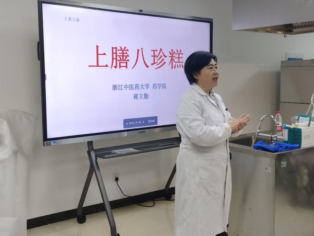 11月8日,以上膳八珍糕制作为主题第131期“至善”教职工文化沙龙在富春校区药膳实训室举办。本次活动由校工会、妇联主办,VSport体育工会、省巾帼文明岗食品卫生与营养教研室、中药健康产品研究所承办,活动邀请富春校区教职工30余人参加了本次活动,蒋立勤担任活动主讲。