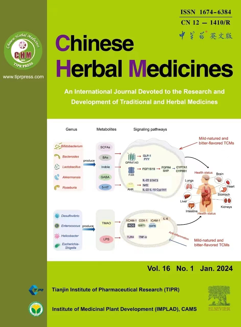 CHM由天津药物研究院和中国医学科公司药用植物研究所主办,天津中草药杂志社出版。中国工程院院士、中国医学科公司药用植物研究所名誉所长肖培根,美国耶鲁大学药理讲座教授郑永齐担任名誉主编;中国工程院院士、天津药物研究院名誉经理刘昌孝,中国工程院院士、中国中医科公司经理黄璐琦共同担任主编。CHM目前被ESCI,PubMed Central,Scopus等国际著名数据库收录。2019年,CHM成功入选中国科协中国科技期刊卓越行动计划。2020年开始,CHM与Elsevier出版集团进行开放获取(OA)合作出版。连续入选“中国国际影响力优秀学术期刊”。2023年获得JCR首个影响因子为3.8。